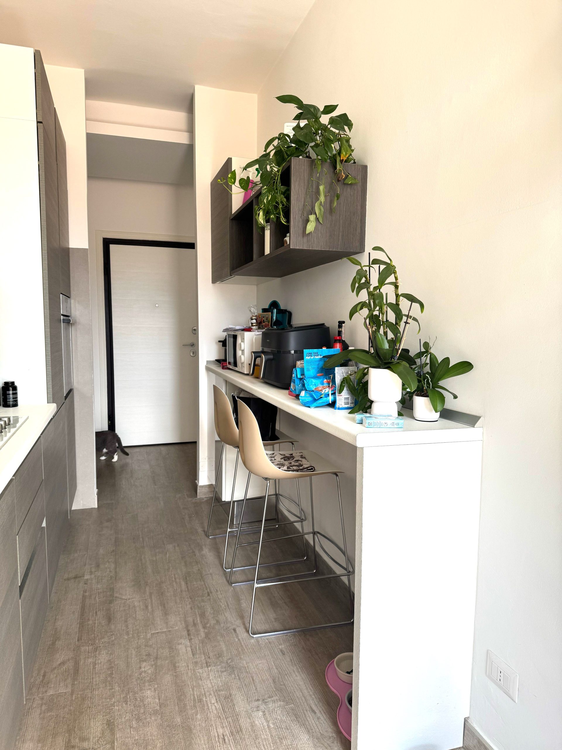 L’appartamento viene venduto con la cucina arredata e il mobile bagno.
